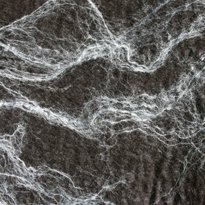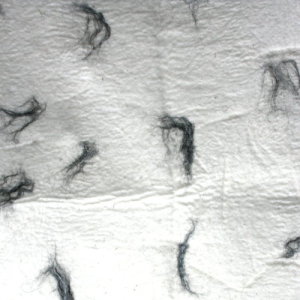 Grown by Mandela. Soft glossy black felt with a shimmering white silk highlight, for fashion garments. Plain black on the other side. Looks a bit like waves. Very artistic. Medium fibre handle.