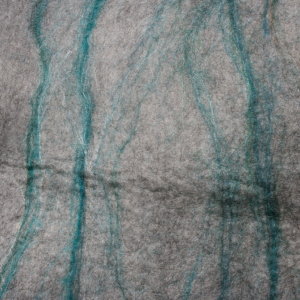 Grown by various grey alpacas. Soft grey felt with a jade green silk highlight, for fashion garments. Light grey each side. Looks a bit like ocean waves. Very artistic.